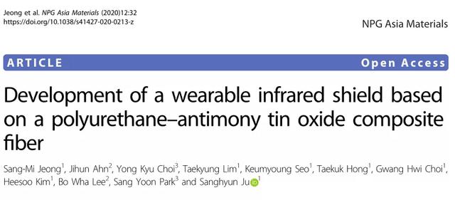 韓國京畿道大學Sang-Mi Jeong等研究人員成功合成了聚氨酯-銻錫氧化物(PU-ATO)復合纖維,與常規的聚酯或PU織物相比,本研究開發的PU-ATO復合纖維紡織品具有出色的IR和熱輻射屏蔽性能,即使暴露于?20°C和+80°C的重復溫度變化以及30天的長期溫度變化的十個循環中,制成的PU–ATO復合纖維仍具有穩定的IR和熱輻射屏蔽性能。PU-ATO復合纖維的表面被制成疏水性,以防止由于PU-ATO復合纖維被吸收的水潤濕而導致IR和熱輻射變形。